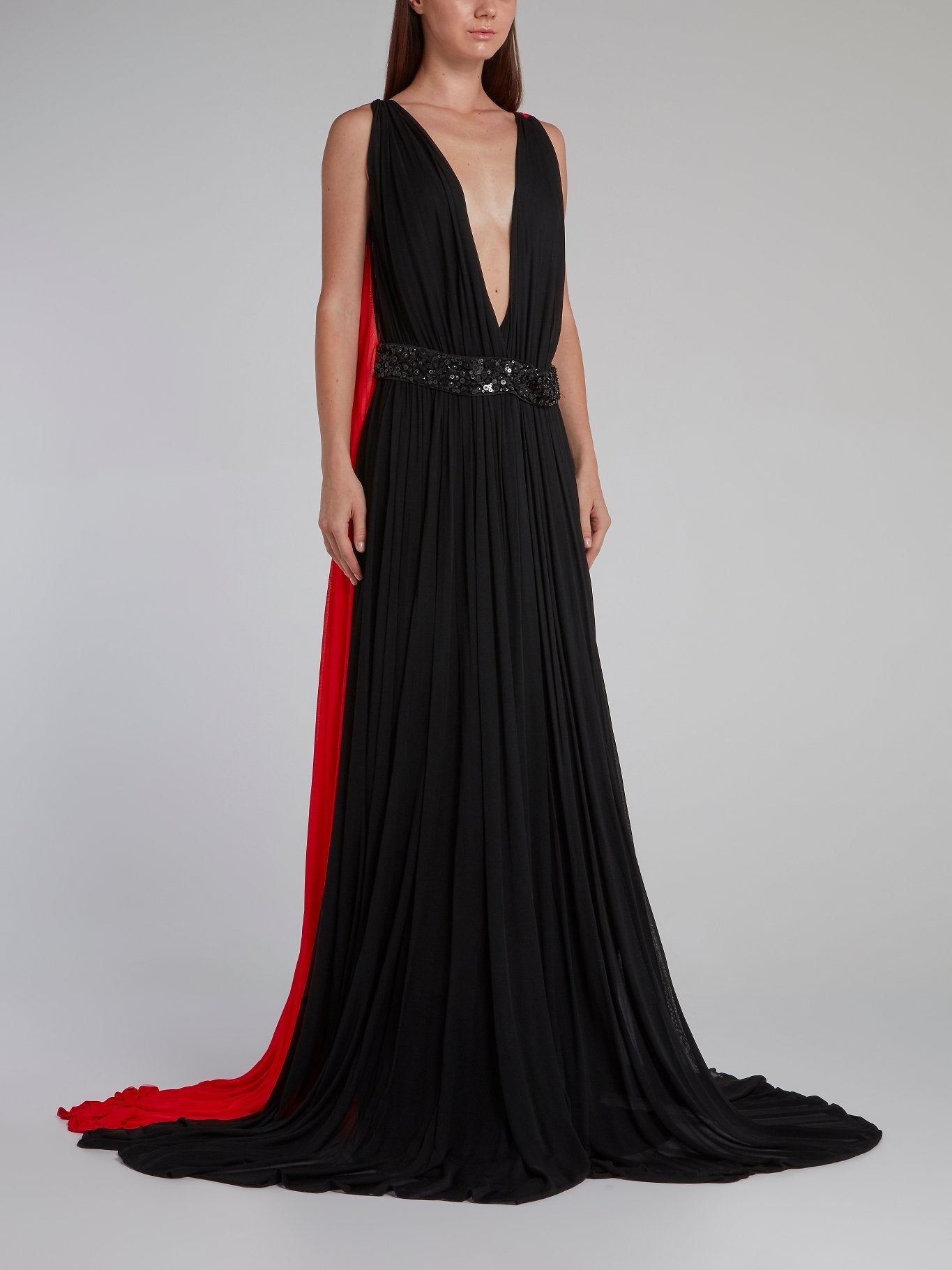 Two Tone Plunging Cape Gown